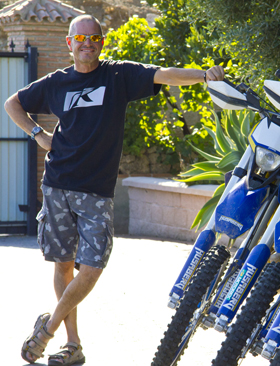 The Adventure Rider Centre HQ is situated 5 mins from the centre of Mijas Pueblo. We are based in a country villa and the site houses our garage, kit and clothing store and a relaxing post ride area (including a sofa filled chill out area, a fridge full of cold drinks and a swimming pool). Our minibus will greet you at the airport and is on hand at all times to ferry you around from HQ to hotel, and of course take you back to the airport afterwards.
